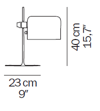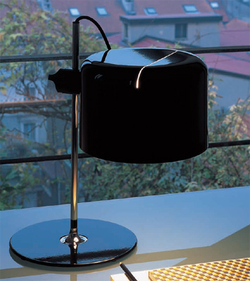 Oluce's Coupe light, designed by Joe Colombo is available as a table or floor light. The Coupe lamp gives direct light, lacquered white or black metal base, chromium-plated stem, adjustable reflector in lacquered white or black aluminium. |