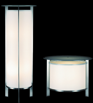 The Hong Kong and Kowloon floor lights are finished in satin nickel with translucent diffuser and matt glass covers. O/all dims: Hong Kong: 410 dia x 1110hmm, Kowloon: 610 dia x 450hmm Light source: Hong Kong: E-27 Max 3x60W, Kowloon: E-27 Max 100W