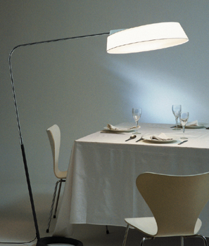 The Magna floor light is available with wheels, if required. The shade and height is adjustable. Metal parts are chromed. O/all dims: 1250x1450-1650hmm Light source: Halogen E-27 Max 250W