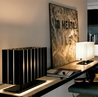Oluce Pin Stripe light, designed by Marta Laudani & Marco Romanelli, comes as a table, wall and ceiling light giving diffused light in transparent glass decorated shade in white, black and gold. Base and structure in painted metal. Lighting with dimmer. |