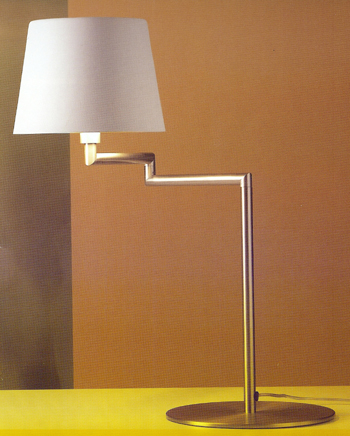 The Walden base and stem are finished in satin nickel. Arms rotate with conical shade lacquered white or black. Also available in white card and transparent blue or green polycarbonate. For information on delivery, prices etc please click |