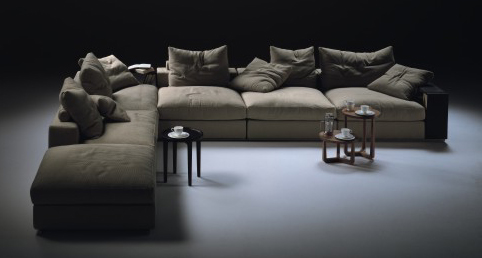 Flexform's Groundpiece sofa is available in two depths, 970 and 1220mms. Seat cushions are filed with down (with a resilient inner core) or polyurethane and Dacron. Cushions are available in down or Dacron as standard.