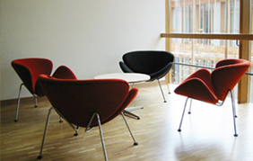 The Orange Slice chair is available in fabric or leather upholstery. Customer's own fabric or leather is available subject to the manufacturer's approval. The Orange Slice is produced in two versions, low (F437) and high (F437B) seat height and a footstool (P437). |