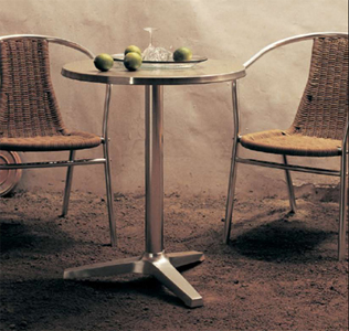 Chipre tables are available either round or square. Tops available include stainless steel small circles with wrapped edges (600mm dia available in concentric circles), compact laminate for out door (1no colour only) and indoor (7no colours) and high impact laminate (14no colours) and beech veneer with solid wood edge.