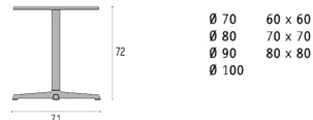 Sicilia tables come in different different shapes and sizes. Bar height 1100mm table is available. Tops available include stainless steel, compact laminate for outdoor (1no colour only) and indoor (7no colours) and high impact laminate (14no colours) and beech veneer with solid wood edge.