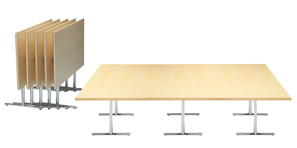 Howe's Tempest tables come in varies sizes and shapes. Fixed, flip-top or folding leg options.Top finishes include melamine, laminate or veneers - plain, stained or dyed. Legs are either chromed, satin chromed or powder coated varies colours.