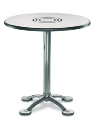 The Toledo table top and base are made from cast polished anodised aluminium and the central coloumn from polished anodised aluminium tube. The Toledo table is available in the following size: - 700 dia x 720hmm, base footprint 590mm dia.